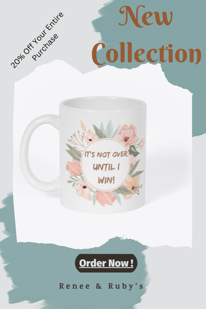 Explore the ‘It’s Not Over Until I Win’ Collection from Renee & Rubys, a bold and beautiful line of journals, mugs, tees, and gifts that remind you (or someone you love) that your story isn’t over – it’s just getting good. 🛍️ Enjoy 20% off your entire order with code ENJOY at checkout! Click here to shop the collection and spark your daily inspiration